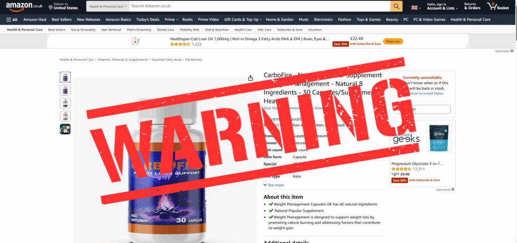We strongly advise against ordering CARBOFIRE from Amazon, Walmart, eBay or Walgreens, as these sources often sell fake versions with entirely different ingredients, which can be very dangerous.
